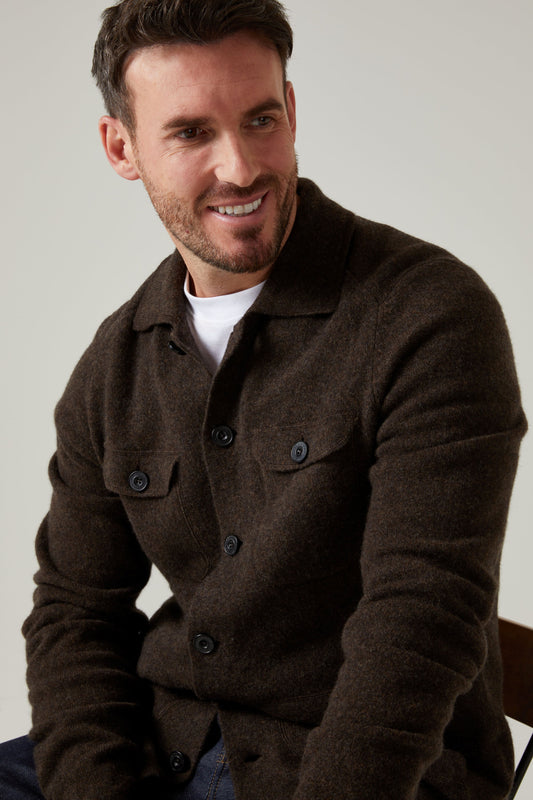 Ferndale Men's Knitted Lambswool Shirt In Cocoa - Regular Fit