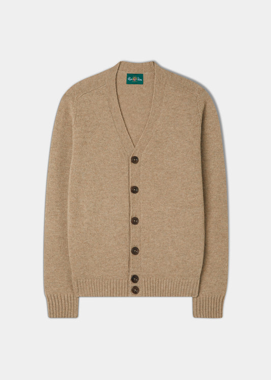 Kinloch Men's Shetland Wool Cardigan in Pale Oak