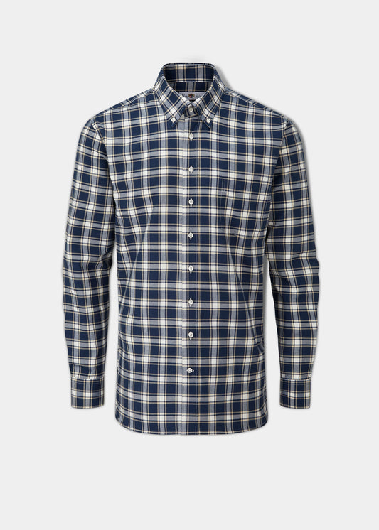 Men's Cotton Button Down Blue Check Shirt - Regular Fit