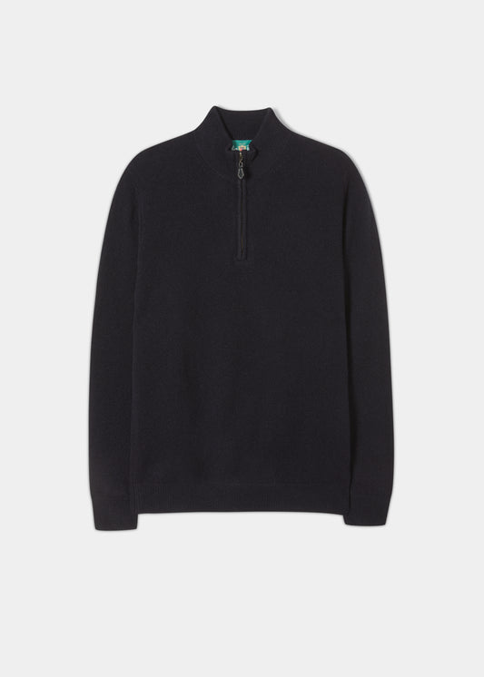 Sutherland Lambswool 1/4 Zip Jumper in Navy - Regular Fit