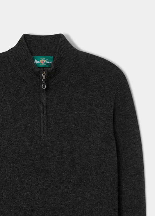Sutherland Lambswool 1/4 Zip Jumper in Charcoal - Regular Fit