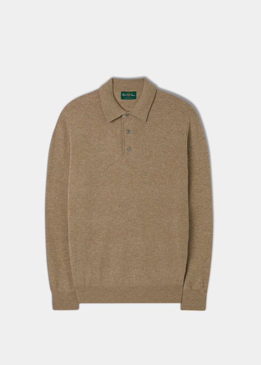 Men's Geelong Lambswool Long Sleeve Polo Shirt in Beige - Regular Fit