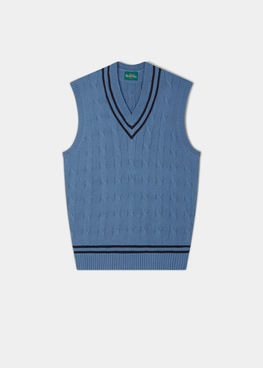 Chadbury Cable Cricket Slipover In Airforce & Dark Navy