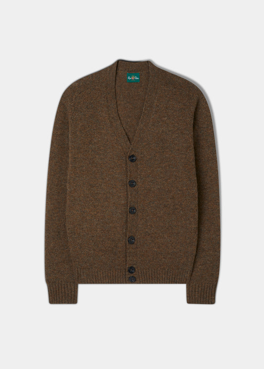 Kinloch Men's Shetland Wool Cardigan in Pale Oak