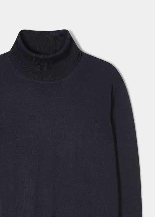 Linton Merino Wool Roll Neck Jumper in Dark Navy - Regular Fit