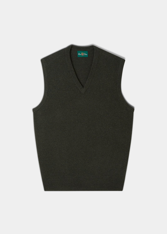 Norfolk Men's Lambswool Slipover in Green Bean - Classic Fit