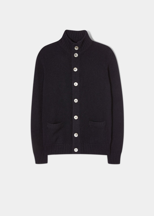 Landford Men's Lambswool Buttoned Jumper In Navy - Regular Fit