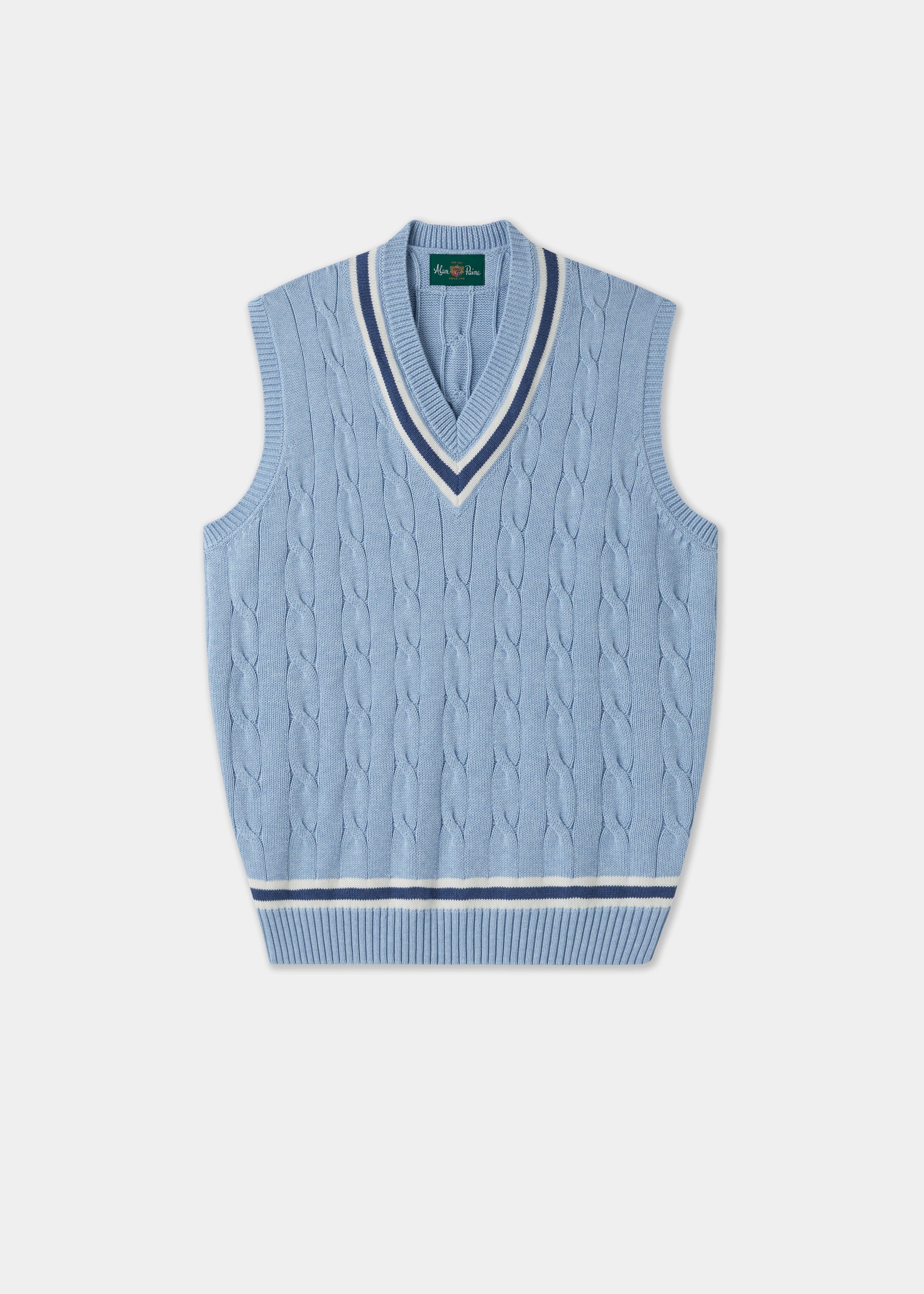 The cotton cable knit sweater was more or less unheard of before William Paine evolved it into a cricket sweater following the cultural surge in popularity towards classic British sports in the early twenties. Our pure cotton cable slipover retains the traditional cable structure but is enhanced by contemporary colours, trims and an updated fit. Experience a piece of our history whilst embracing the current trend for contemporary sportswear.