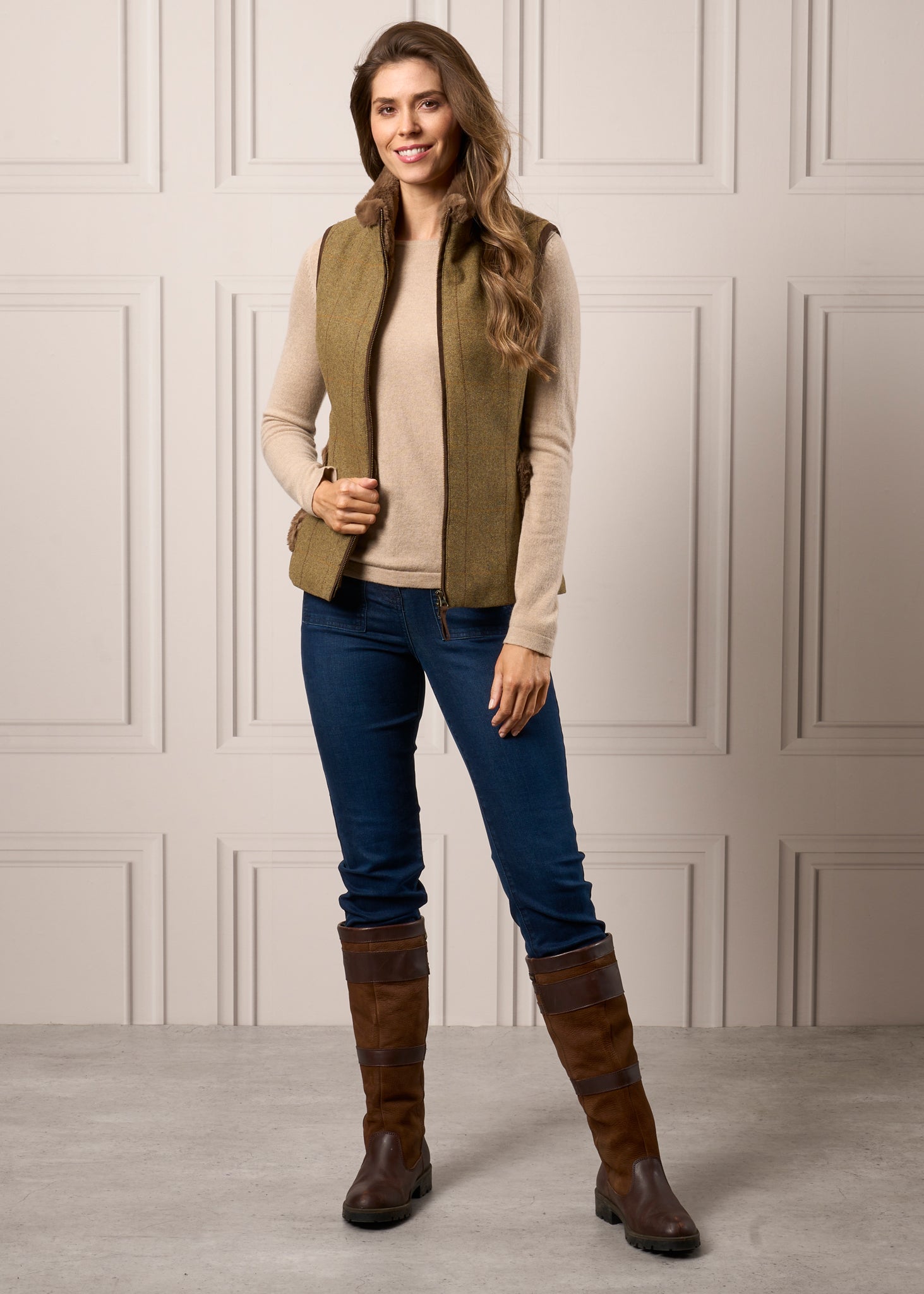 Combrook Ladies Tweed Gilet In Grove - Regular Fit
