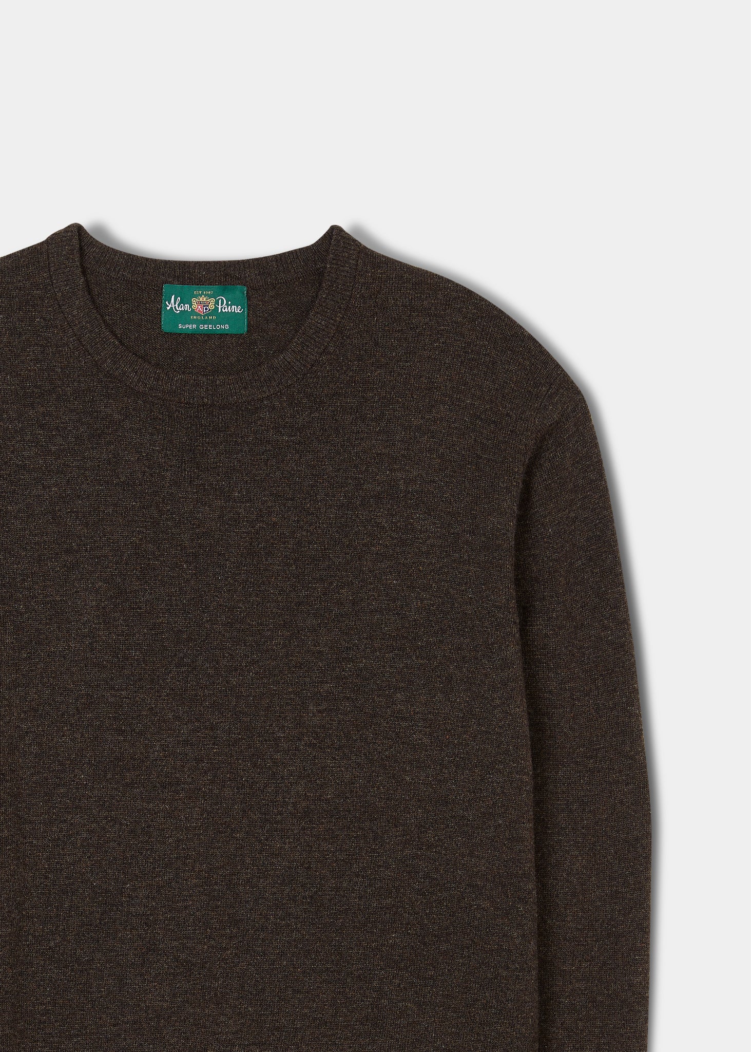 This jumper is crafted from a lighter weight pure geelong lambswool. All Alan Paine knitwear is fully fashioned; each garment is knitted to shape on the knitting machine and not cut and sewn.