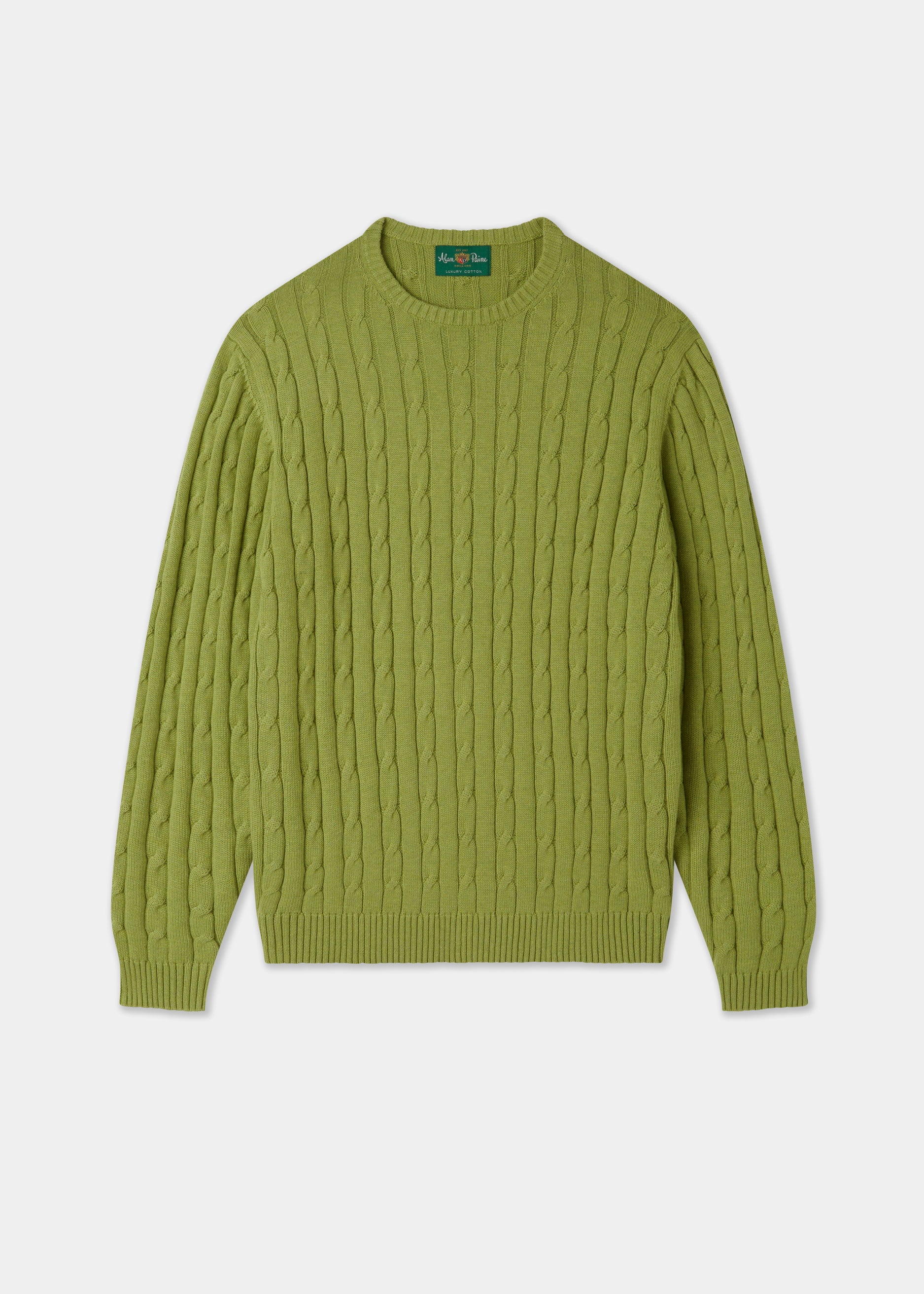 Honley Cotton Cashmere Cable Knit Jumper In Lichen